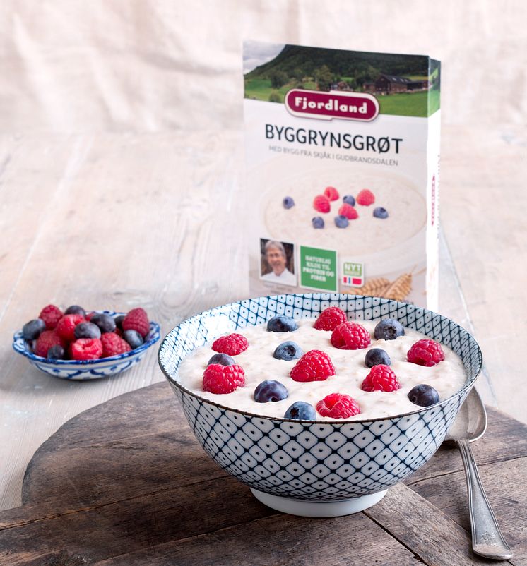 Fjordland byggrynsgrøt med blåbær og bringebær