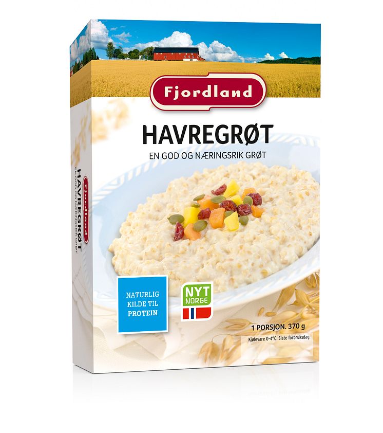 Havregrøt lagd på kuttet havre og kokt på melk. De næringsrike havrekornene er rike på fiber og er en fin kilde til protein. En porsjon havregrøt fra Fjordland dekker hele 20 % av mengde fiber Myndighetene anbefaler oss å innta daglig.