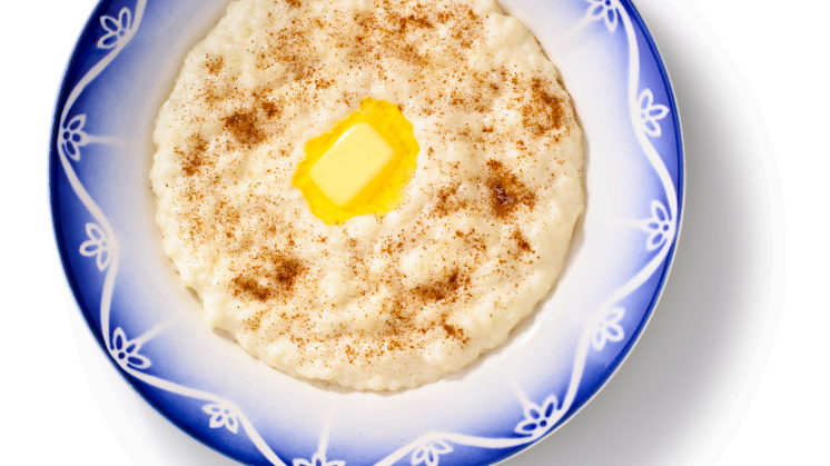 Fjordland risgrøt pyntet med smørøye, sukker og kanel.