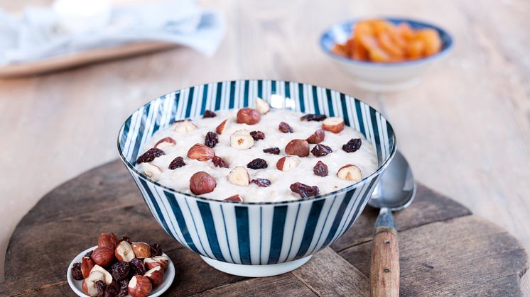Fjordland byggrynsgrøt med hasselnøtter og rosiner