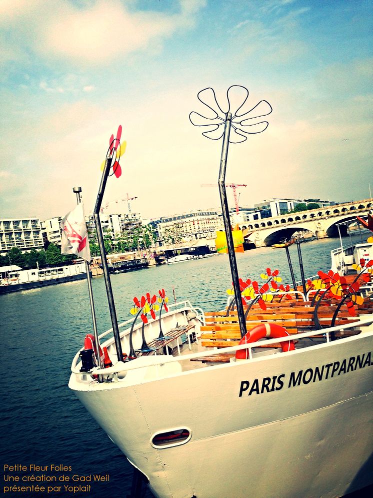 Yoplait yoghurt feirer 50 år med en gedigen blomstereng og åtte kunstverk i form av lekeapparater foran Eiffeltårnet i Paris. Det feires også på Seinen.