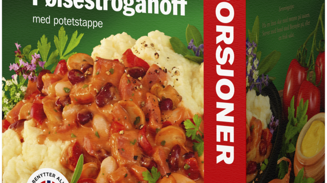 Fra før finner du Grove Kjøttkaker i denne serien, og nå utvider vi med nyheten Pølsestroganoff med potetstappe. Her får du norske pølser i en smaksrik stroganoffsaus med rikelig med grønnsaker som bønner, sjampinjong, paprika og løk. Retten kommer med potetstappe, og veier 810 gram.