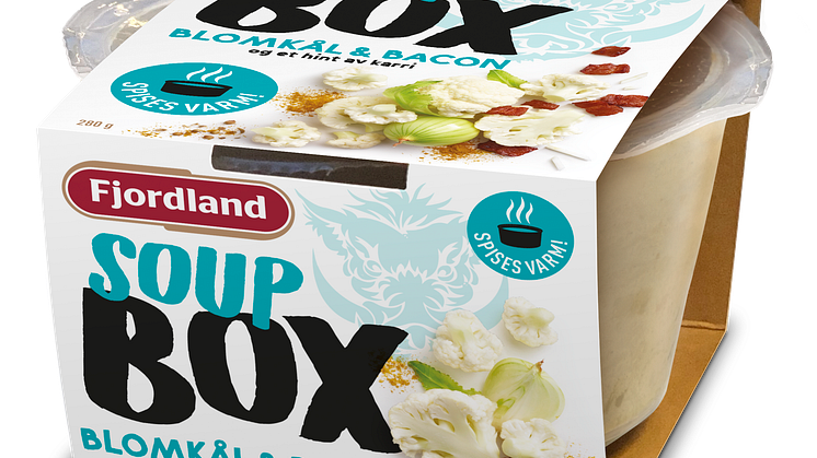 Vi spiser middag senere, flere velger varmretter til lunsj og vi spiser oftere og heller mindre måltider. For å gjøre hverdagen enkel og likevel næringsrik, med nordmenns spisevaner i dag, lanserer nå Fjordland et nytt produkt i smårettserien Fjordland BOX, en Blomkål & Bacon-suppe.