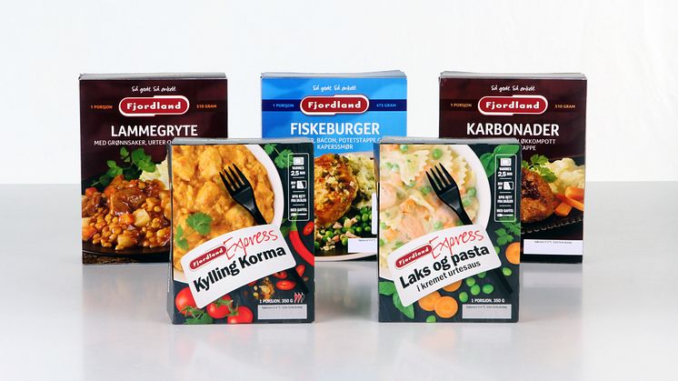 Fjordland lanserer to nye fiskeretter og tre nye kjøttretter. Fiskeburger fra Lofoten, middelhavsinspirert lammegryte, karbonader, laks og pasta og kylling korma er høstens nyheter.