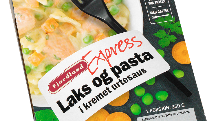 I Express-serien har Fjordland laget en ny laks- og pastarett med en frisk urtesaus basert på crème fraîche og smakt til med sitron. Norske smaksrike erter og gulrøtter gir retten flotte og friske farger.