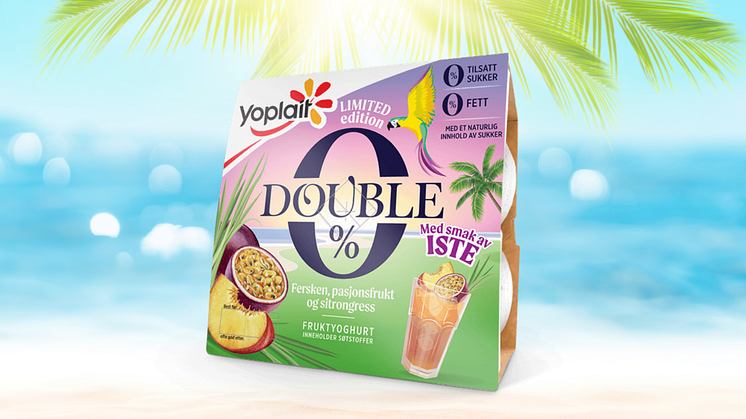 Yoplait Double 0 med smak av iste i 4pk er årets sesongvariant fra Yoplait. Den har en frisk smak av fersken og pasjonsfrukt med et hint av sitrongress, som gir en sommerlig og god smakskombinasjon.