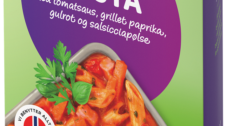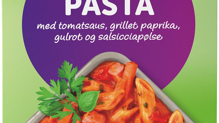 Nyheten pasta med tomatsaus er en smaksrik og fyldig pastarett med tomatsaus, grillet paprika, gulrot og den stadig mer populære salsicciapølsen. Riflet pasta penne gir godt feste for sausen og byr derfor på en ekstra rik smaksopplevelse. Dette er en klassisk pastarett med hele 58% grønnsaker! Retten kommer i serveringsklar skål – ekstra enkelt for deg.