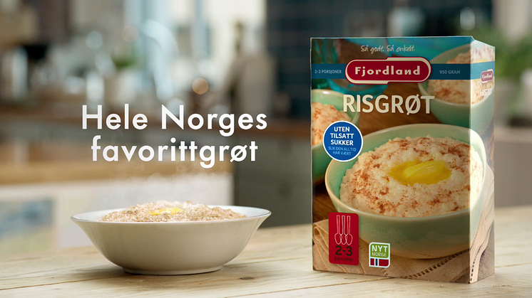 • Fjordland risgrøt pyntet med smørøye, sukker og kanel.